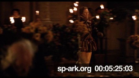 Description Orlando running into Great Hall, taking bowl of rosewater and holding it out to Queen Elizabeth.