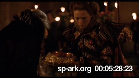 Description Orlando taking bowl of rosewater to present to Queen Elizabeth.