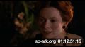 Description Medium long shot of attendants assisting Queen Elizabeth into her seat