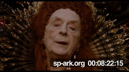 Description Close-up of Queen Elizabeth's face as she speaks to Orlando