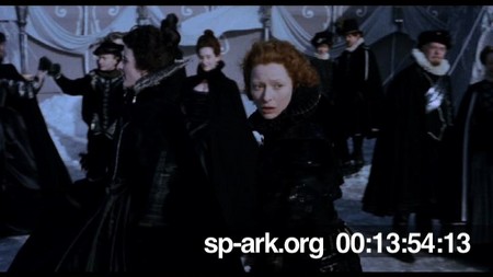 Description Medium shot of Orlando leaving Euphrosyne's side whilst staring at Sasha.