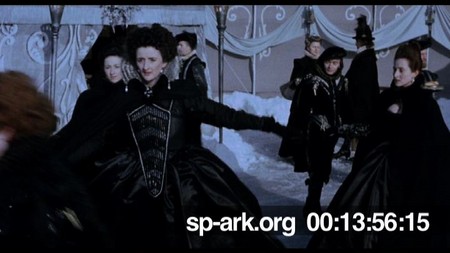 Description Medium shot of Orlando leaving Euphrosyne's side whilst staring at Sasha.
