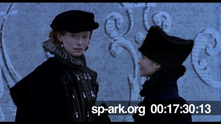 Description medium shot of Orlando and Sasha talking and seeing Euphrosyne fall.