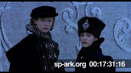 Description medium shot of Orlando and Sasha talking and seeing Euphrosyne fall.