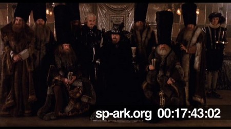 Description long shot of King James and Ambassadors waiting for dance to begin.