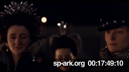 Description medium close up of Euphrosyne looking at Orlando while they dance.