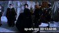 Description point of view shot from sledge moving through local people in the snow and ice.