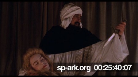 Description medium shot of Othello murdering Desdomona who dramatically dies.