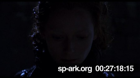 Description close up of Orlando's face as he looks down at the ice cracking beneath him.