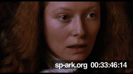 Description extreme close up of Orlando's facial reaction to Nick Greene dropping his spoon.