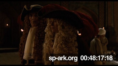 Description Orlando and Archduke Harry walk around courtyard, listening to noises