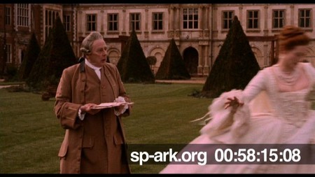 Description Orlando walking through grounds of Great House while servant gives her invitations.