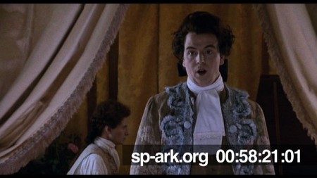 Description medium shot of singer at Countess' accompanied by harpsichord.