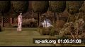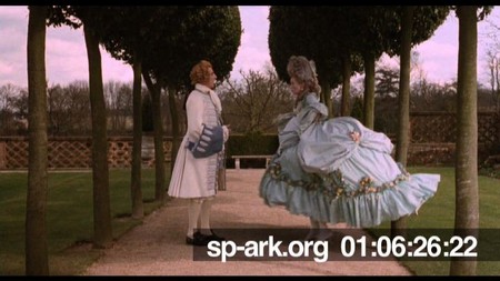 Description Long shot of Orlando straightening after gathering her skirts in front of Archduke Harry
