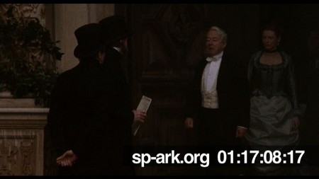 Description Orlando standing at front door of Great House with butler
