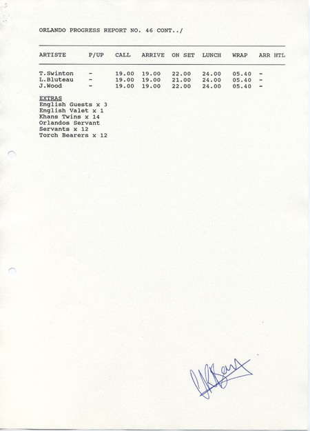 Description Orlando Daily Progress Report No.46 continued, Black and white A4 computer printed, Paper