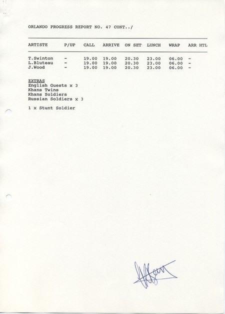 Description Orlando Daily Progress Report No.47 continued, Black and white A4 computer printed, Paper