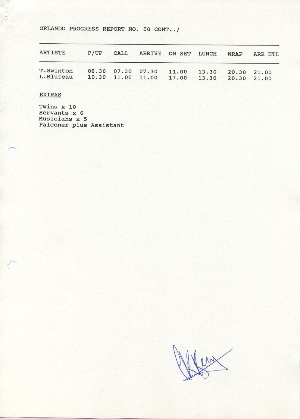 Description Orlando Daily Progress Report No.50 continued, Black and white A4 computer printed, Paper