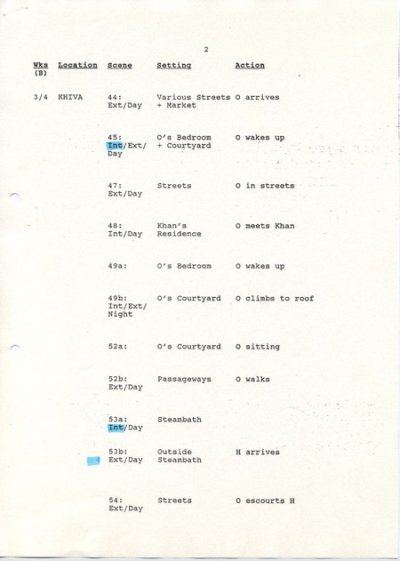 Description Orlando Shooting Schedule page 2, Black and white A4 computer printed, Paper