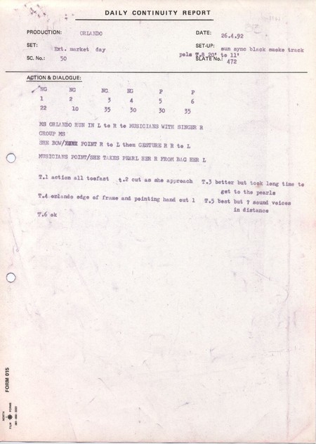 Description Orlando Daily Continuity Sheet 6, Black and white A4 typed, Paper