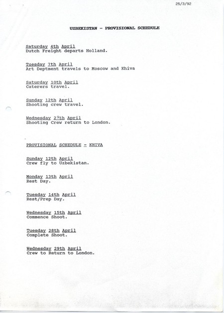 Description Uzbekistan- provisional schedule, Black and white A4 computer printed, Paper