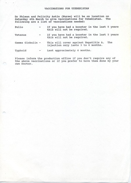Description Orlando Information on Uzbekhistan page 3, Black and white A4 computer printed, Paper