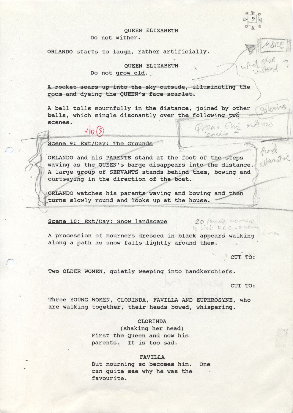 In Orlando, there are many extremes of emotions that are witnessed and experienced. Throughout Orlando's life events and transformations, his / her emotions on screen help convey the internal feelings and thoughts behind the visual information. Orlando appears to exprience deep happiness in some moments, and deep melancholy in others. Overall, as Sally Potter stated in one of her assets I have included in my pathway, "The unifying principle is the force of the character of Orlando who propels us believably through time and history in the search for life and a love."