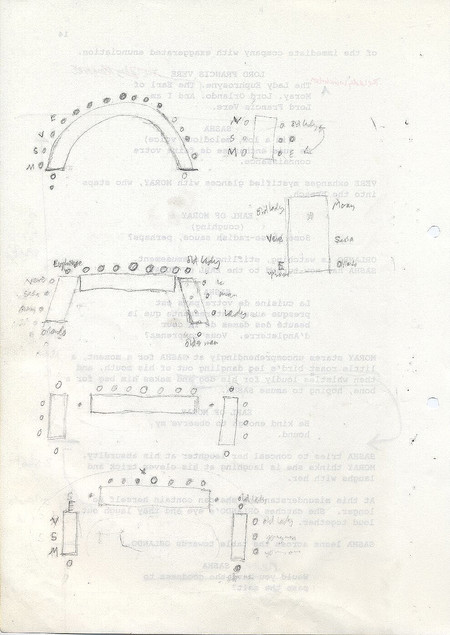 Description Black and white A4 computer printed with handwritten annotations, bound into book, Paper,Orlando Sally Potter’s Shooting Script page 14 back