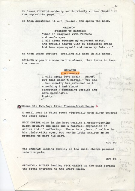 Sally Potter constantly revises her portrayal of Orlando's emotions throughout the development of the film. This pathway displays the numerous changes she decides to make, in turn shaping the cinematic character of Orlando through his/her emotive mannerisms, and will decipher as to why Potter decides to implement these changes in the ways she does so.