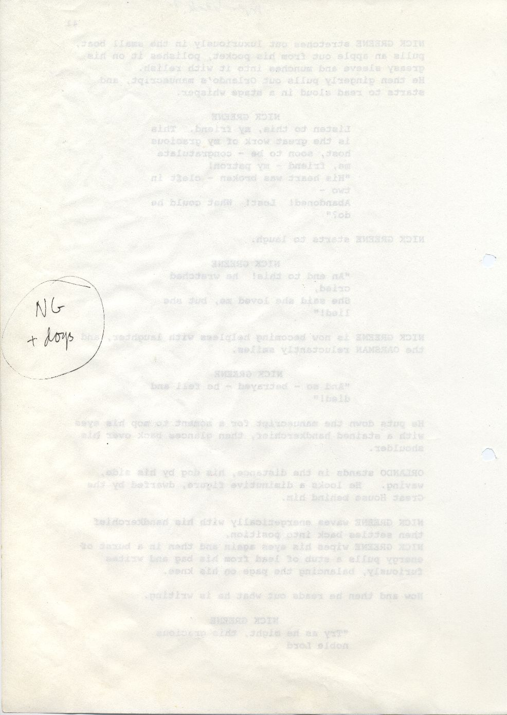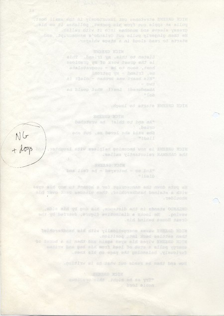 Description Black and white A4 computer printed with handwritten annotations, bound into book, Paper,Orlando Sally Potter’s Shooting Script page 41 back