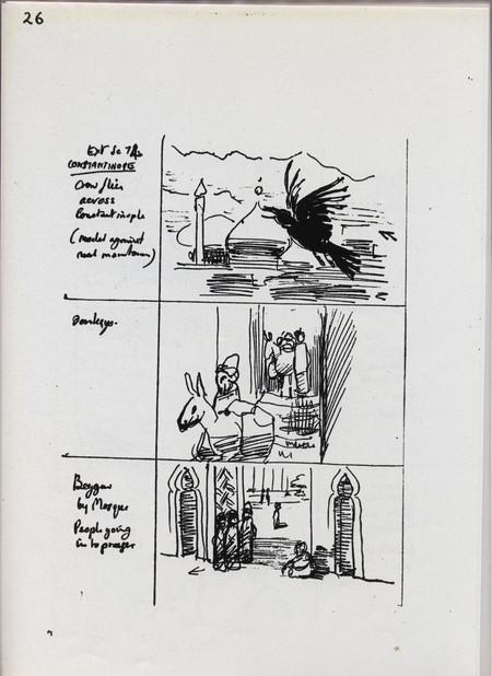 Description Black and white hand-drawn sketches, Paper, Orlando storyboard page 26