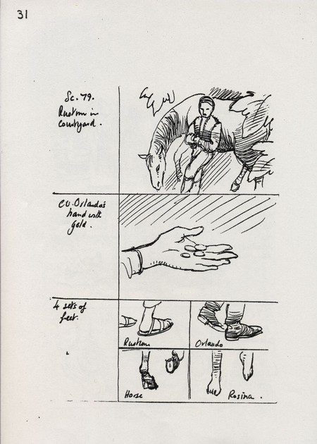 Description Black and white hand-drawn sketches, Paper, Orlando storyboard page 31