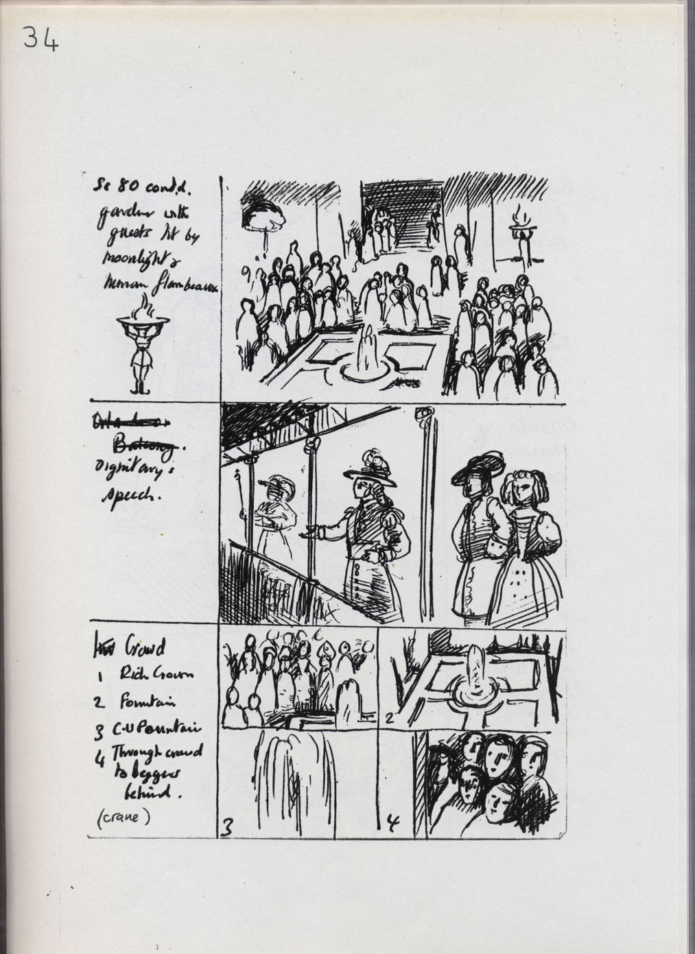 Description Black and white hand-drawn sketches, Paper, Orlando storyboard page 34