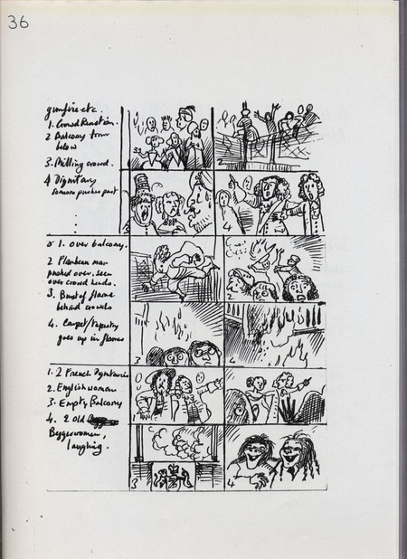 Description Black and white hand-drawn sketches, Paper, Orlando storyboard page 36