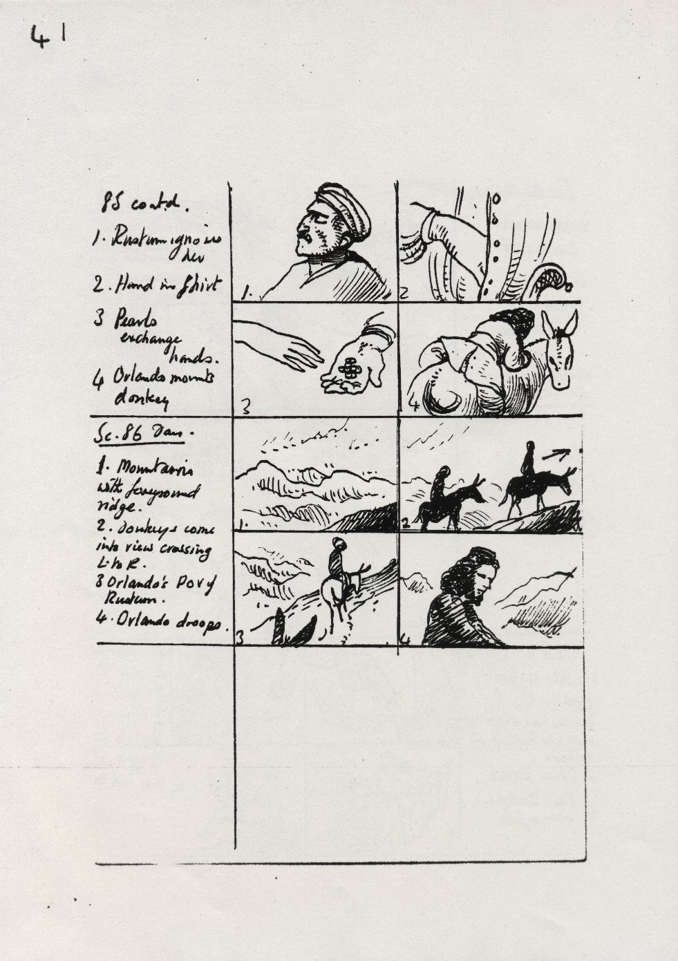 Description Black and white hand-drawn sketches, Paper, Orlando storyboard page 41