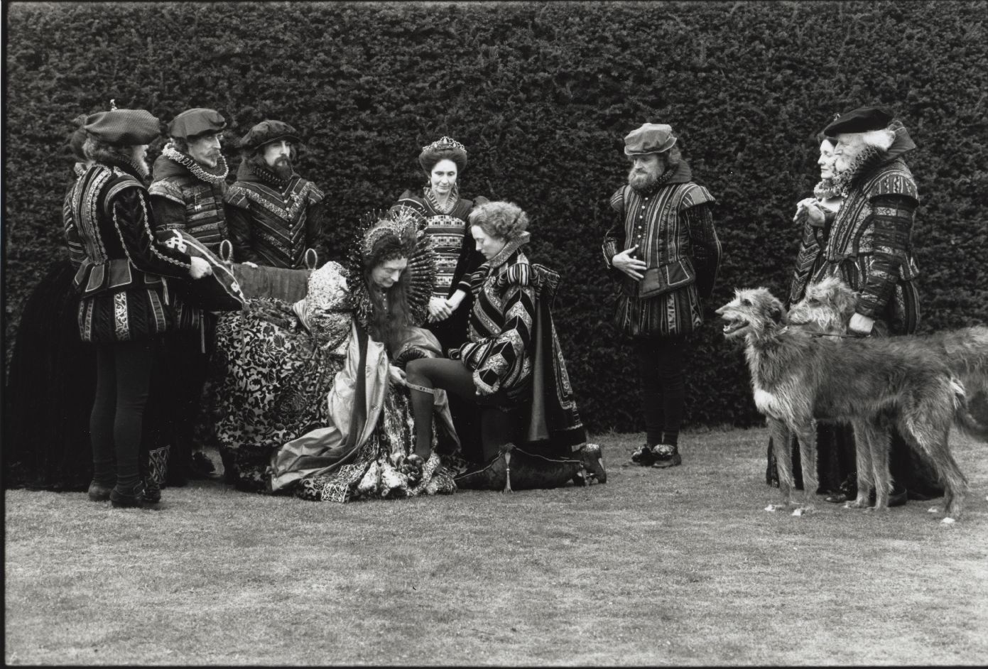 Description 8x10" black and white photograph of Orlando, Queen Elizabeth, Euphrosyne and courtiers