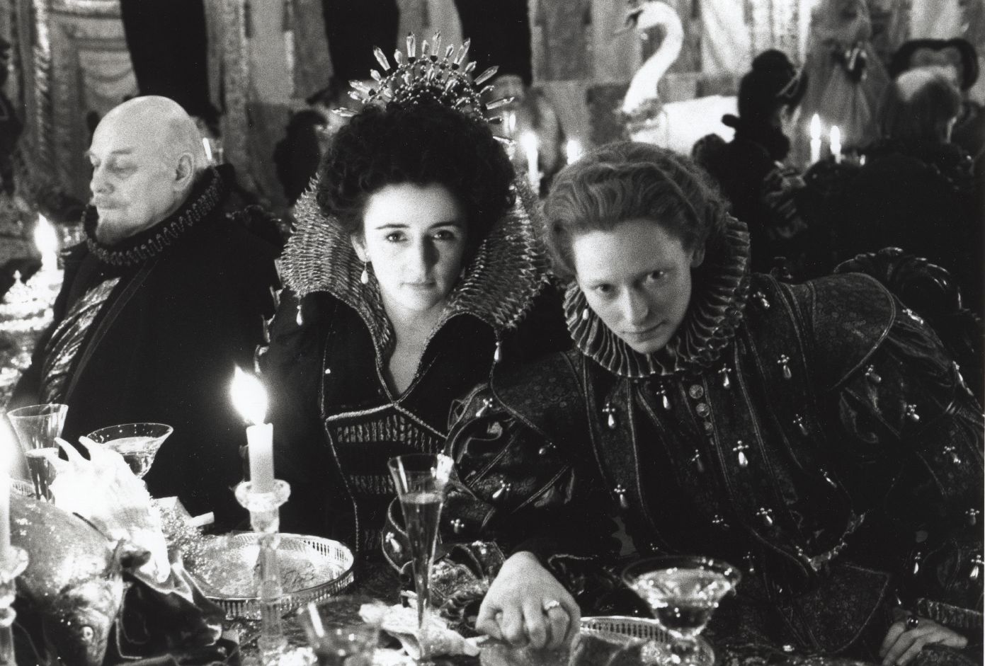 Description 8x10" black and white photograph of Orlando and Euphrosyne at dinner table in royal enclosure