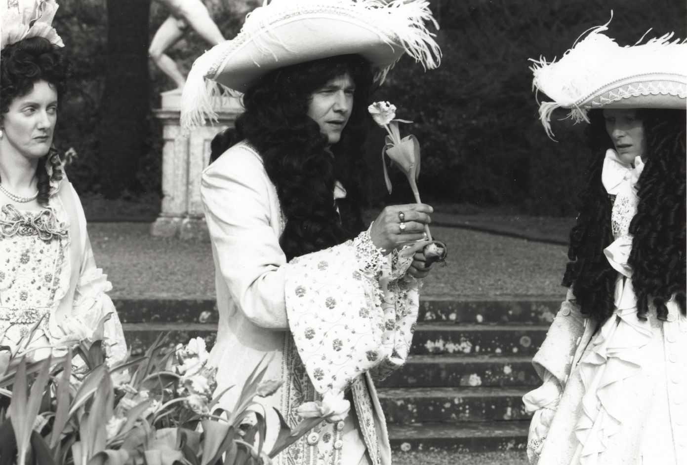 Description 8x10" black and white photograph of Orlando with King William and Queen Mary in Palace Grounds