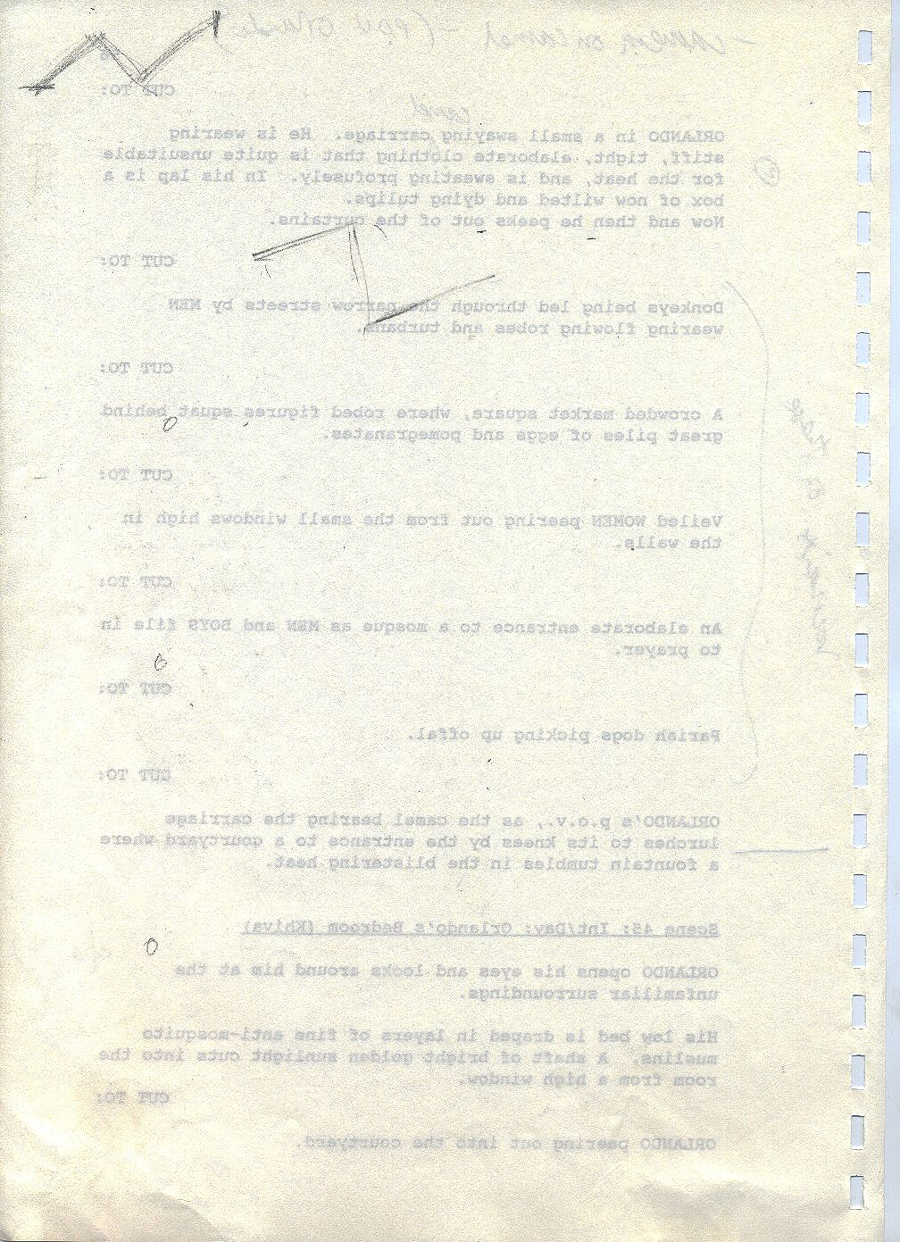 Description Revised draft script for Orlando, sketch in pencil, page 56, back