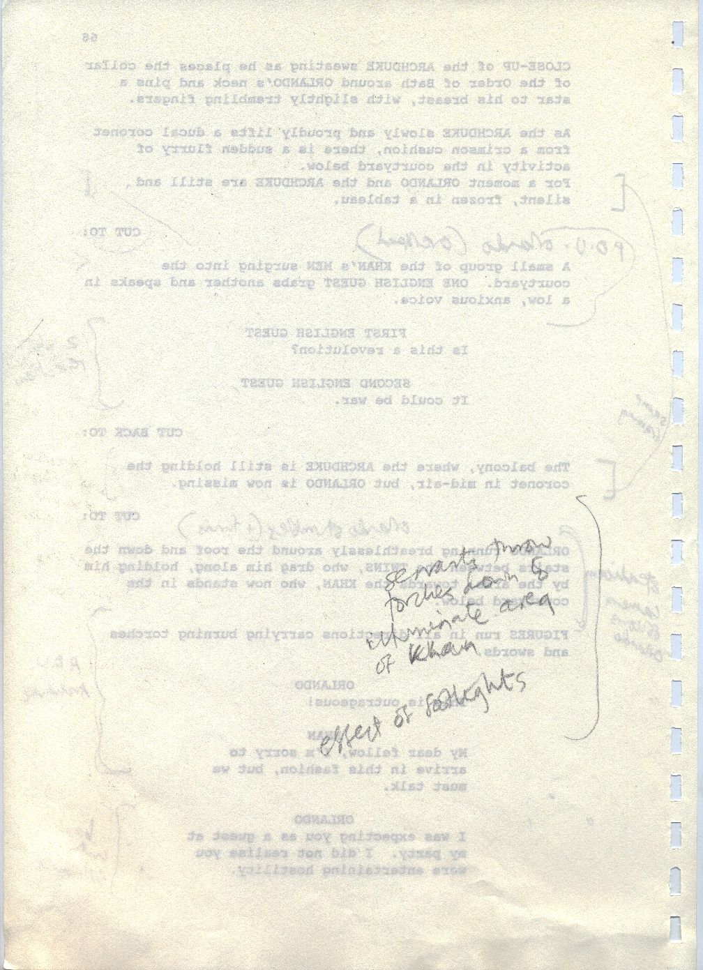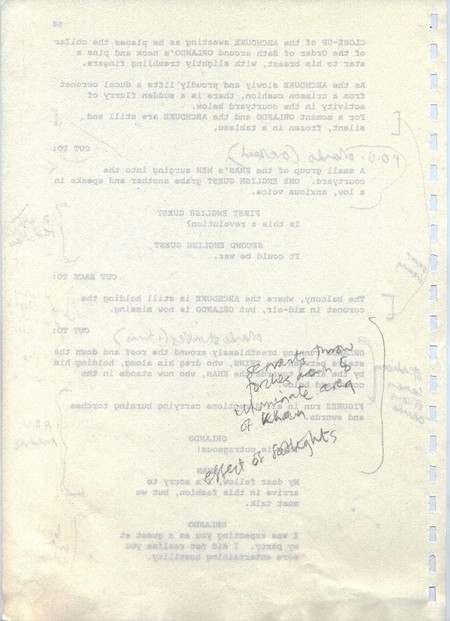 Description Revised draft script for Orlando, handwritten notes in pencil, page 68, back