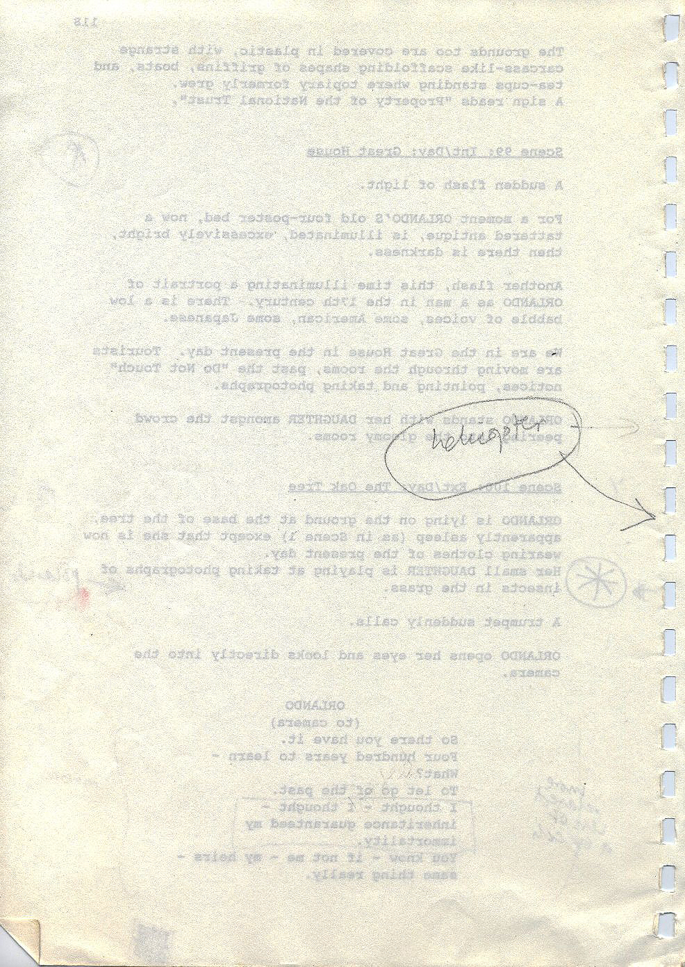 Description Revised draft script for Orlando, handwritten notes in pencil, page 118, back