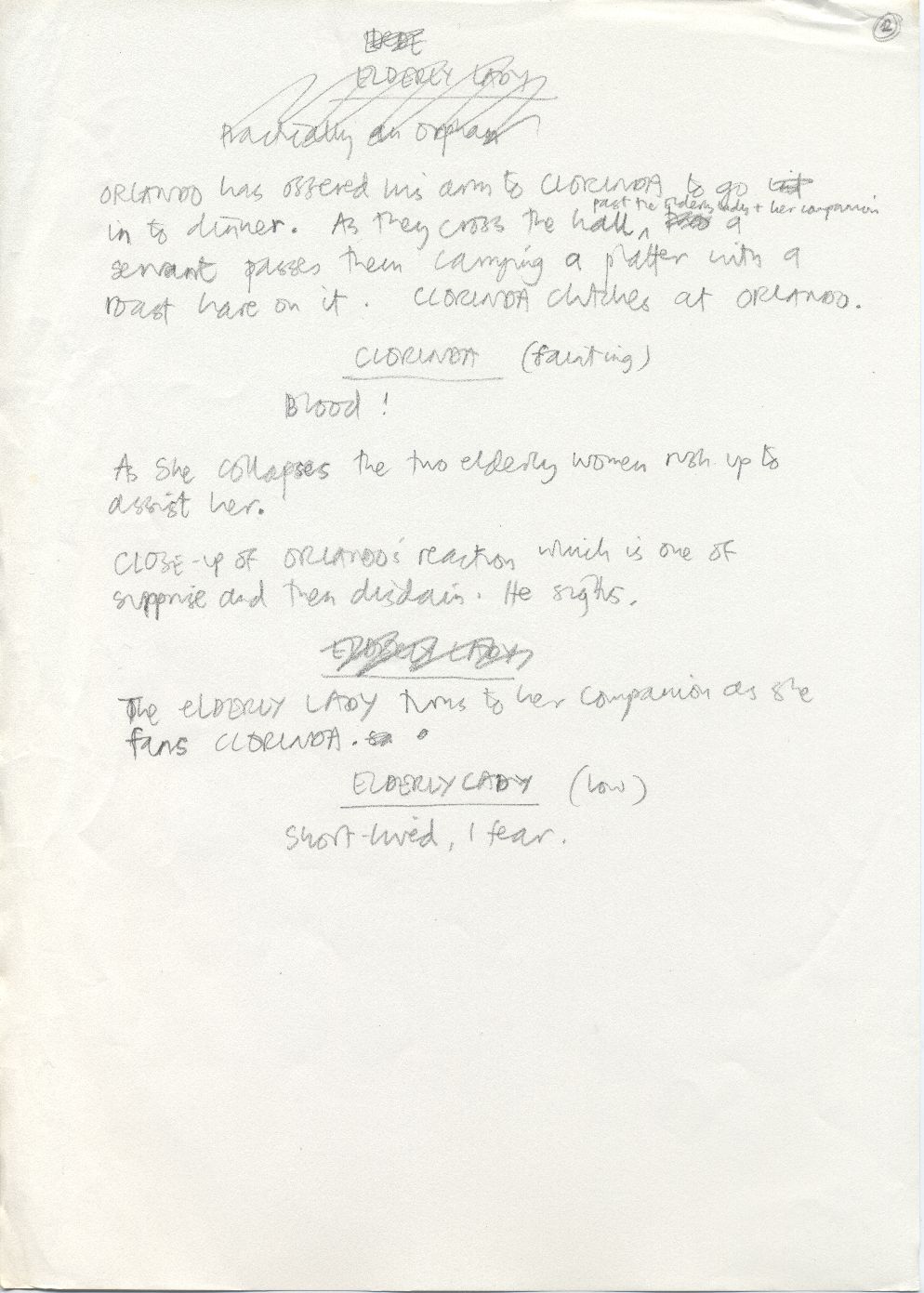 Description Handwritten page of script marked "2". Pencil on A4 paper, attached to page 12 with papeclip