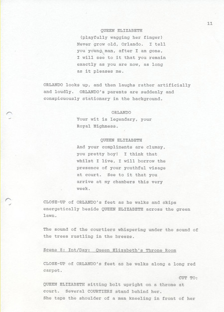 Description Black and white A4 computer printed, Paper, Revised draft of screenplay