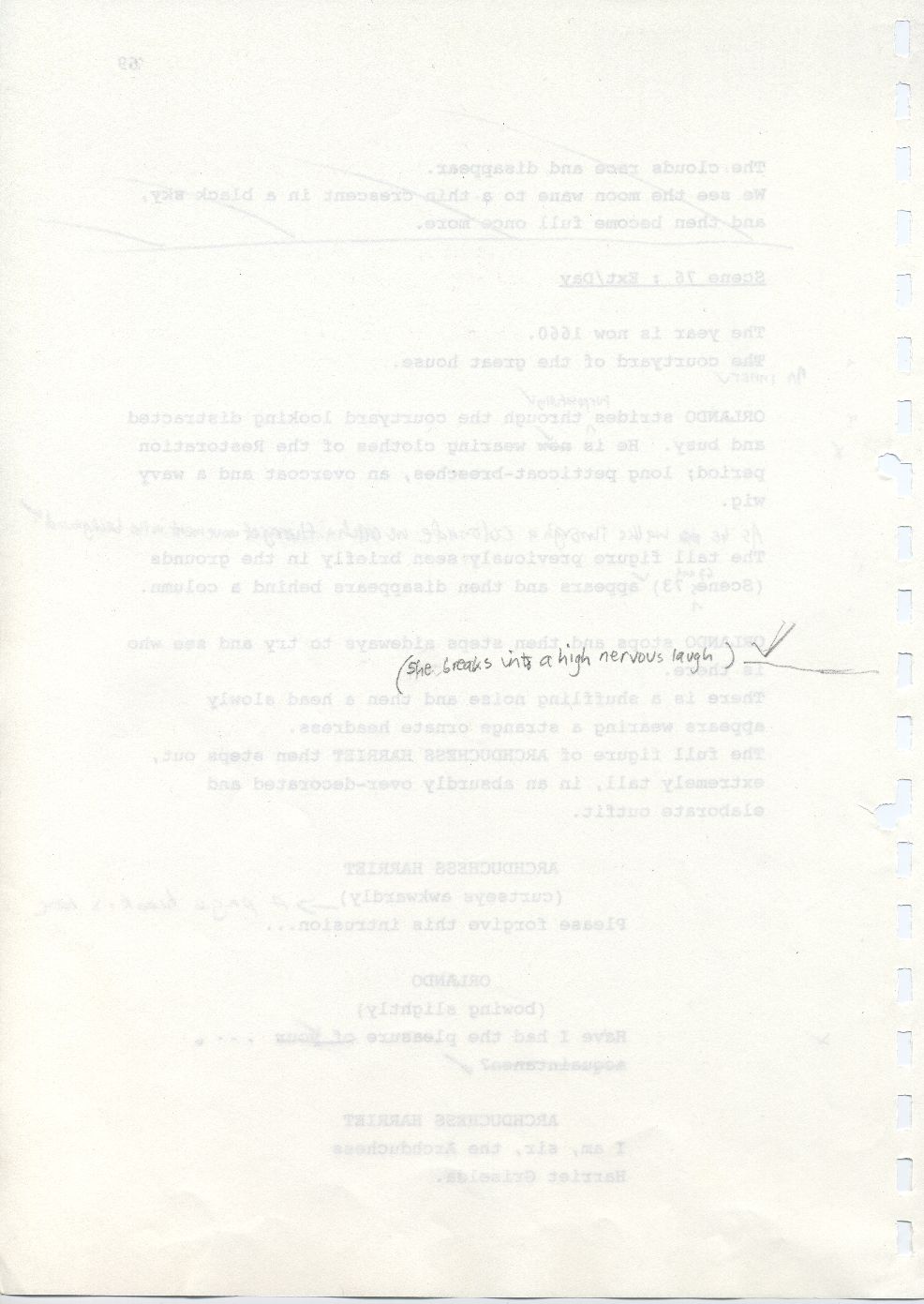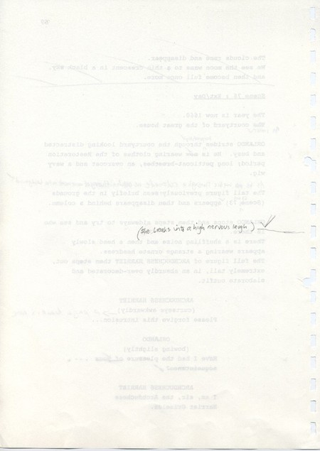 Description Reverse of page 69 of second draft script for Orlando. Handwritten pencil script on A4 paper bound with plastic comb spine