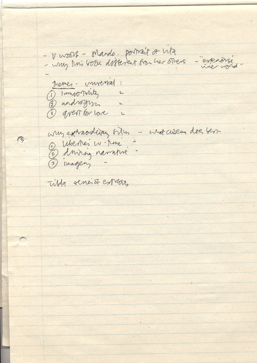 I compiled various assets about how Orlando looks at the camera. While I was watching the film, I noticed that it was a specific stylistic choice. By sifting through the documents, this knowing look from Orlando meant to address the viewers. In Sally Potter's commentary, she explains the direct look exemplifies a “kind of release… a kind of flying out of the historical period right into the present moment." These random moments when Orlando looks at the camera brings a sense of knowing and feeling that the viewers can relate to.