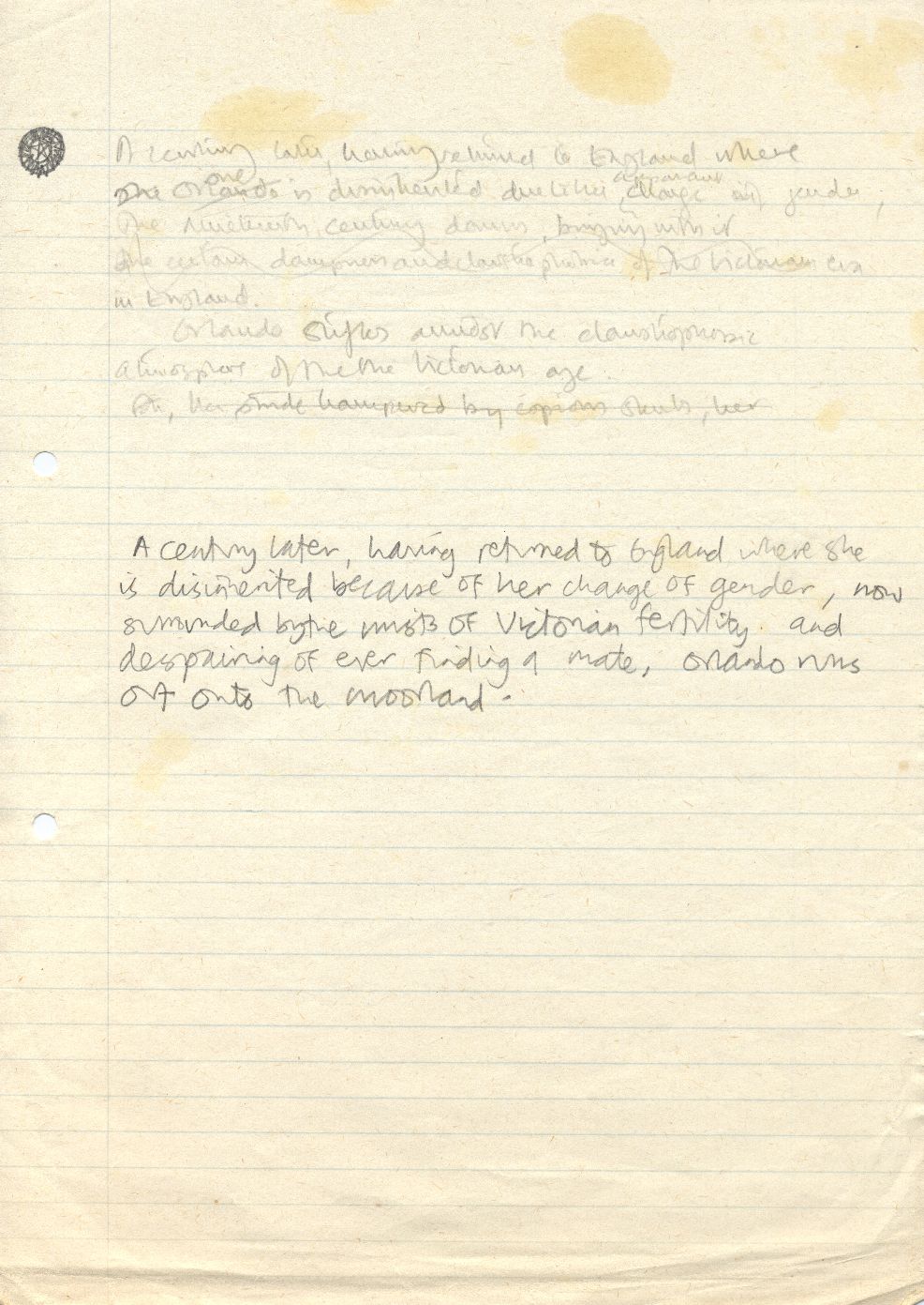 Description Page 7 of handwritten notes and ideas on Orlando written in pencil on a loose leaf of A4 lined paper