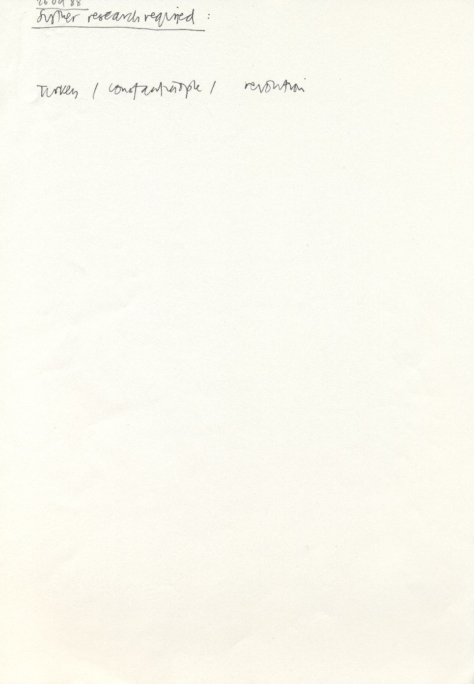 Description Page 3 of handwritten notes on the breakdown of the script, black pen on white A4 paper attached with silver paperclip