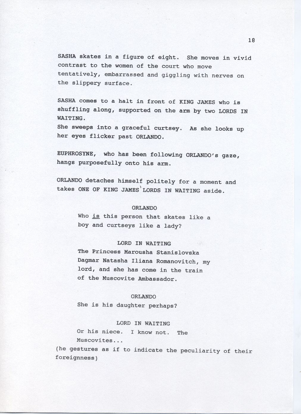 Description Page 18 of rough draft of scene 26. Black text on white A4.