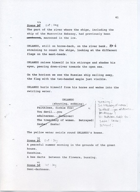 Description Page 41 of rough draft of scene 47, scene 48, scene 49. Black text on white A4 with pen annotations.