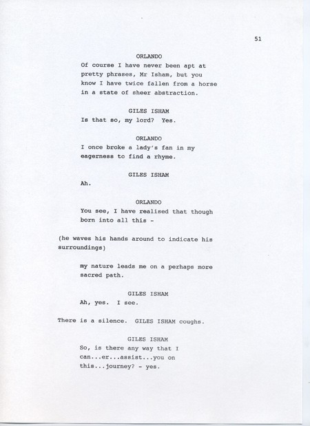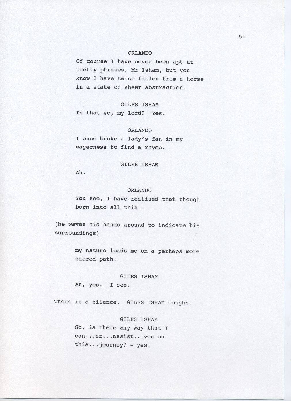 Description Page 51 of rough draft of scene 65. Black text on white A4.